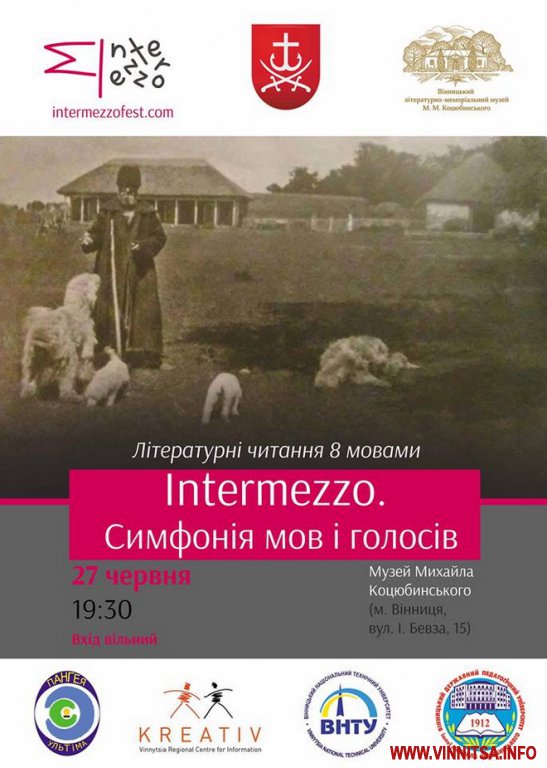 27 червня о 19:30 у Вінницькому літературно-меморіальному музеї Михайла Коцюбинського під 300-літньою липою відбудуться літературні читання «Intermezzo. Симфонія мов і голосів», організовані Департаментом культури Вінницької міської ради та ГО «Інститут культурного менеджменту» в рамках проектів Міжнародного фестивалю оповідання «Intermezzo».