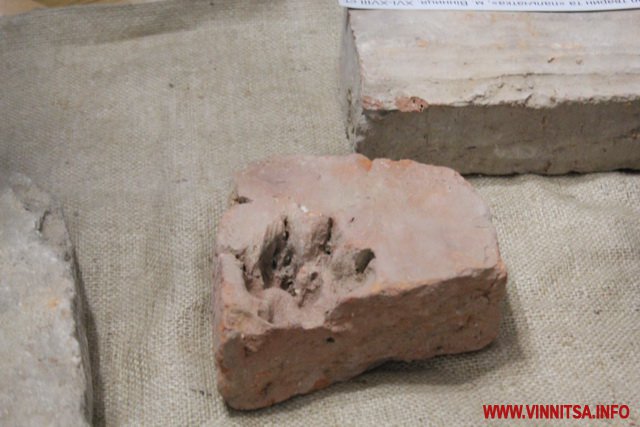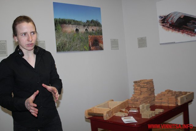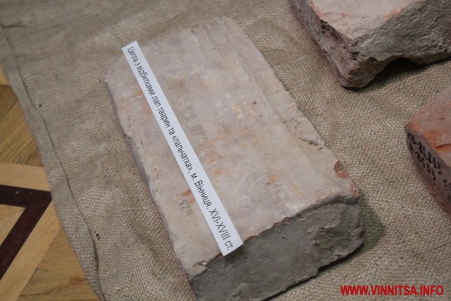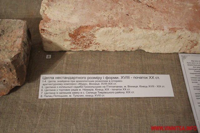 «В колекції обласного музею є 260 цеглин. На виставці сьогодні представлено близько 130. Переважно вони з Вінниці - 90%. Найбільше цікавої цегли ми знайшли в Мурах та під час очистки підземелля музею, яке провалилося. Там була велика кількість таврованої цегли і цегли пальчатки, ми їх забрали в колекцію. При будівництві на Поліни Осипенко та на Коріатовичів коли виривали котлован, знайшли зразки цегли і викликали археологів.