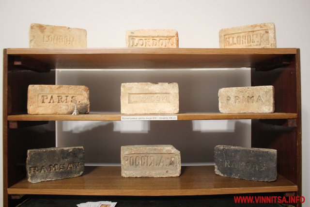 Вогнетривка цегла вона естетична, гарна, високої якості. Вся вона була виготовлена в межах сучасної України. Цегла несе цікаву інформацію, тут назви європейських столиць, більшість напис «Лондон», «Париж», «Росія». А також багато цегли з написом «Рамсай», це відома англійська фірма, яка виготовляла її, ще з кінця 18 століття. З цієї цегли робили печі.