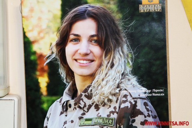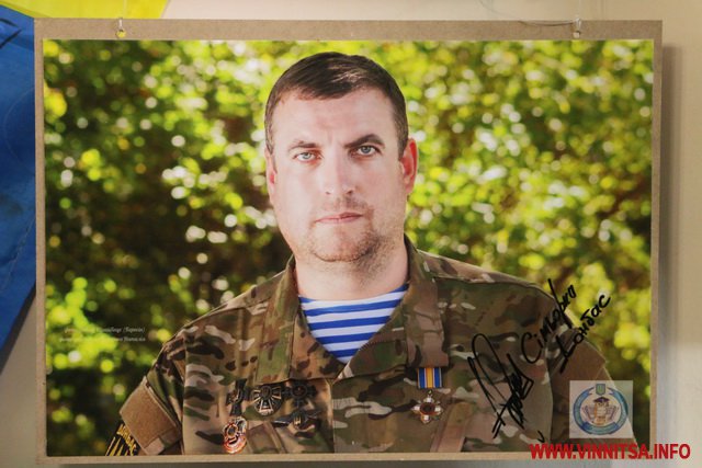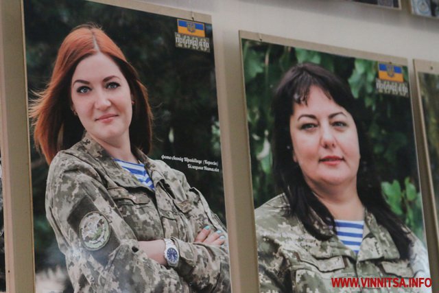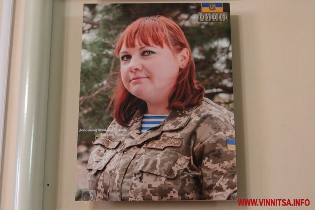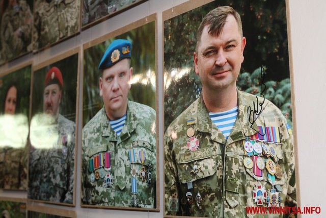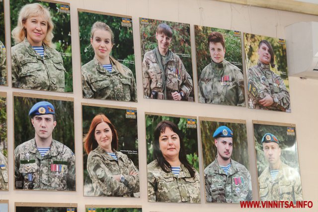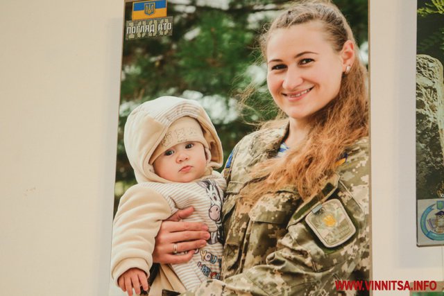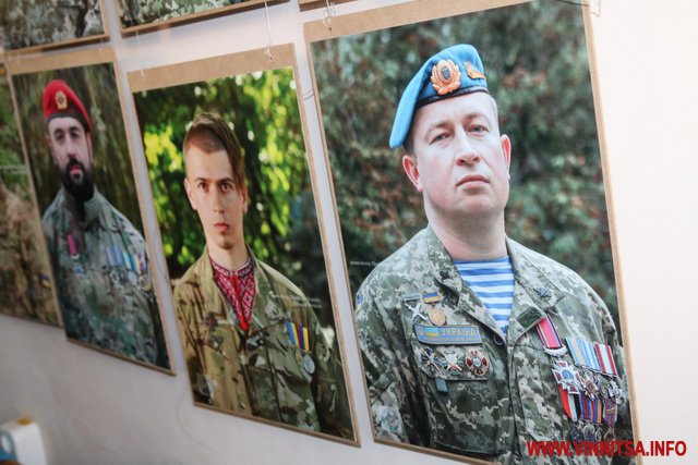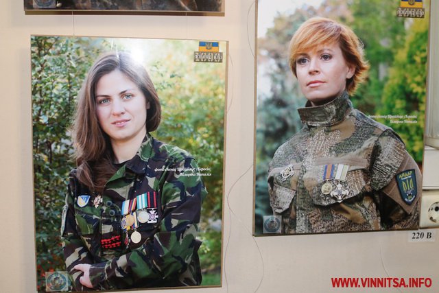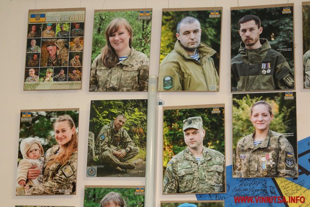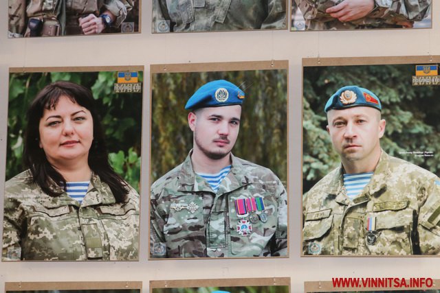 В залі представлено близько 120 фотографій учасників АТО з різних міст України. Серед світлин є й фотографія вінничанки Світлани Бевз. Вона служила в батальйоні «Айдар», була командиром зенітного розрахунку. Вінничанка прийшла на відкриття виставки з легендарною собакою Баді.