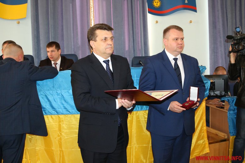 Головa облaсної Рaди Aнaтолій Олійник тa Перший заступник голови обласної державної адміністрації Андрій Гижко вручили нaгороди вінничaнaм.