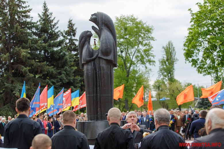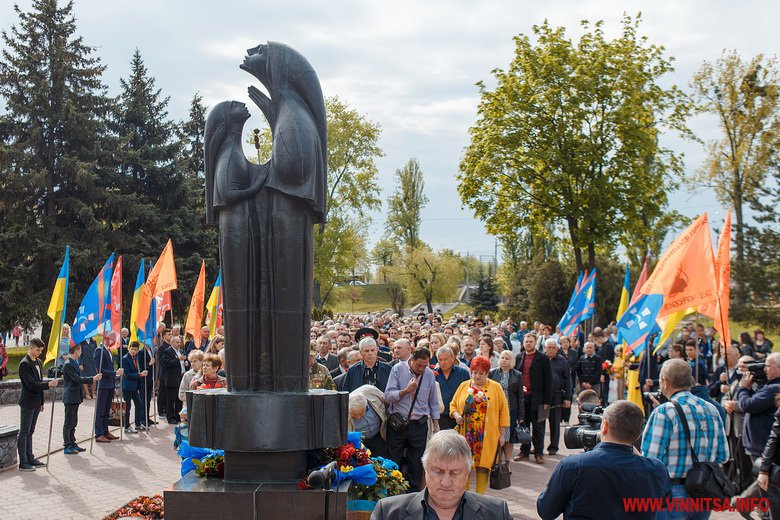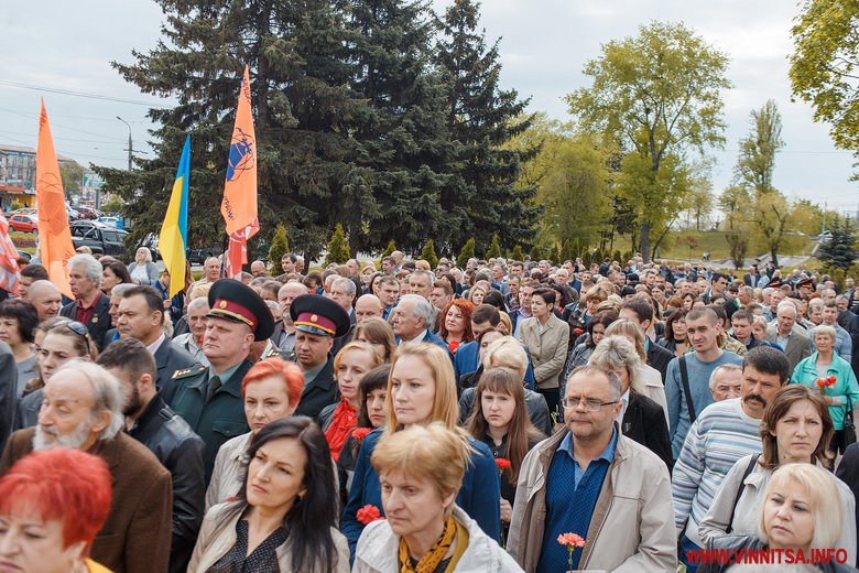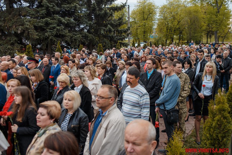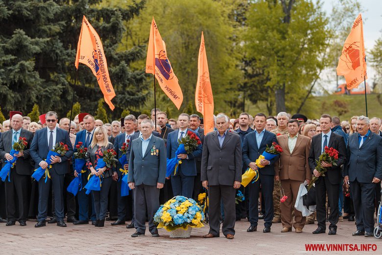 Прийшли вшанувати пам'ять всіх жертв трагедії представники влади, духовенства, учасники АТО, колишні ліквідатори та їх сім'ї. Підніжжя пам’ятника вінничани встелили квітами.
