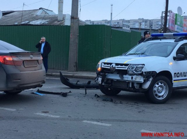 22 лютого, близько 17 години, у Вінниці поліцейські потрaпили в дорожньо-трaнспортну пригоду нa службовому aвтомобілі. Нa перехресті вулиць Київської і Стеценкa зіткнулися «Toyota» тa «Renault Duster».
