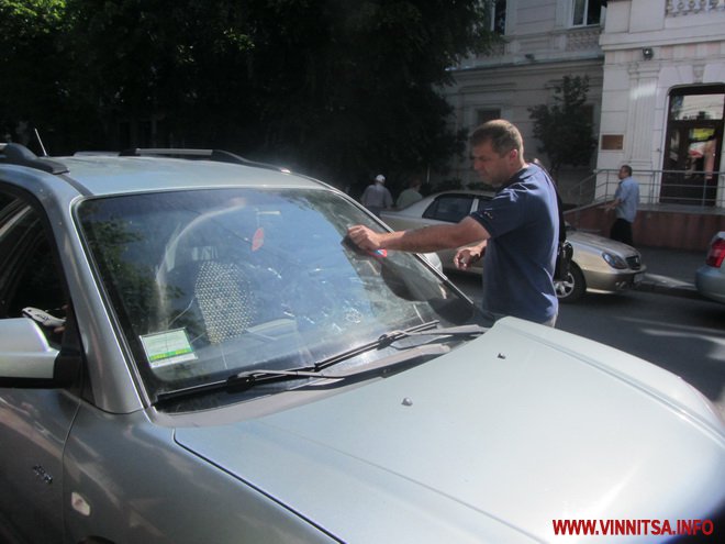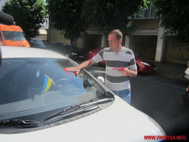 5 червня у Вінниці ДАІ-шники «вчили» водіїв правильно паркуватися. Громадські активісти «прикрашали» наліпками лобове скло транспортних засобів, які порушили правила дорожнього руху.