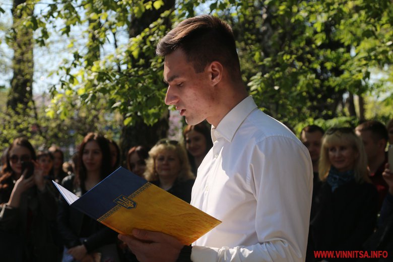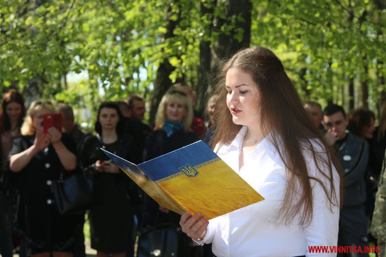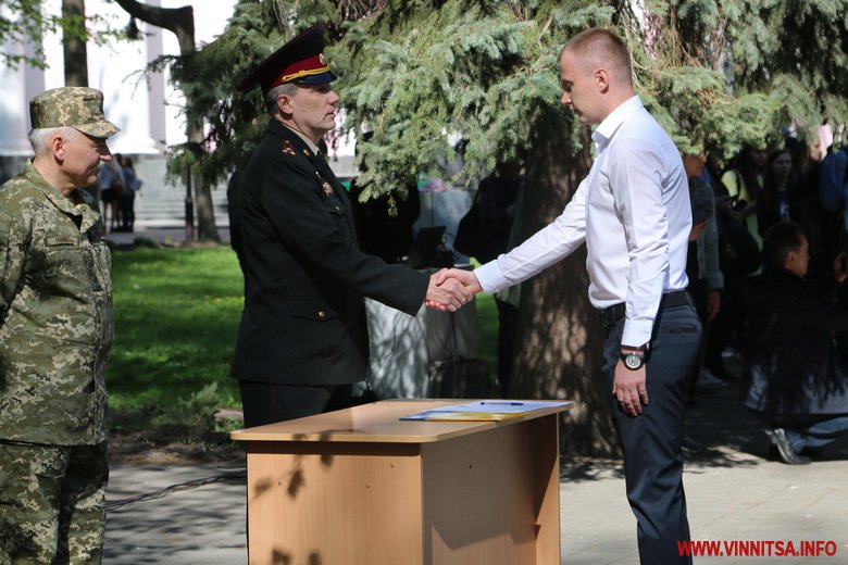 «Сьогодні кращі випускники вінницького медичного вишу, які пройшли підготовку за програмою офіцера запасу медичної служби складають присягу. Серед них майбутні військові хірурги, терапевти, анестезіологи, сімейні лікарі.