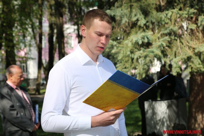 «Я сам з Київської області, виявив бажання поступити в медичний університет і вибрав саме Вінницю. Професія медика завжди вважалася поважною. Я вирішив стати військовим лікарем хірургом. Звичайно, це є небезпечною професією і не кожен з нас зможе на це погодитися, але розуміюче те, що зараз відбувається на сході України… Я готовий бути на передовій, це рішення приймалося мною тривалий час. Маю знайомих, які служити в зоні АТО і отримали поранення, знав тих хто загинув там. Кожного дня наші хлопці отримують поранення, помирають, вони потребують нашої допомоги. Я вважаю, це мій обов’язок », - каже 23-річний випускник Захар Шовкун.