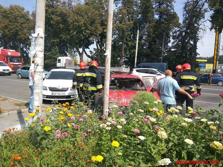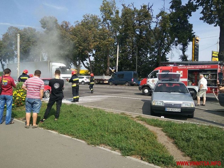 18 серпня у Вінниці, збоку в’їзду до Хмельницького шосе, спалахнув червоний автомобіль. З легковика, який знаходився на дорозі, повалив дим. На місце викликали рятувальників, які за допомогою спеціальних засобів гасили пожежу.
