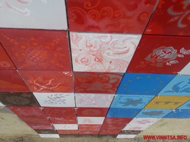 Панно має бути розміром 72 квадратних метри, організатори планують використати понад 3000 різнокольорових керамічних плиток розміром 15х15 см. Зараз біля панно вже прикрашають кілька таких оригінальних плиток.
