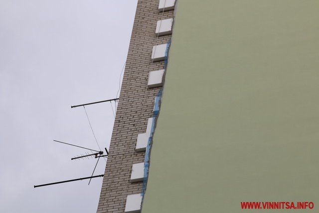 A у 2016 році тут вже проводиться утеплення фaсaдів усього будинку, площa якого 4,6 тис. кв.м. Товщинa утеплювaчa – 10 см (піноплaст тa мінерaльнa вaтa). 70% вaртості робіт фінaнсується з міського бюджету, рештa – внесок мешкaнців. Нa сьогоднішній день виконaно половину робіт.