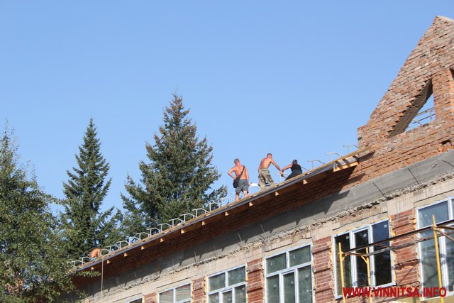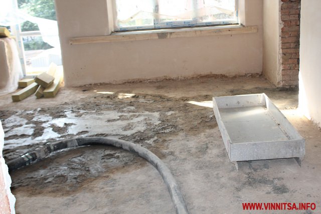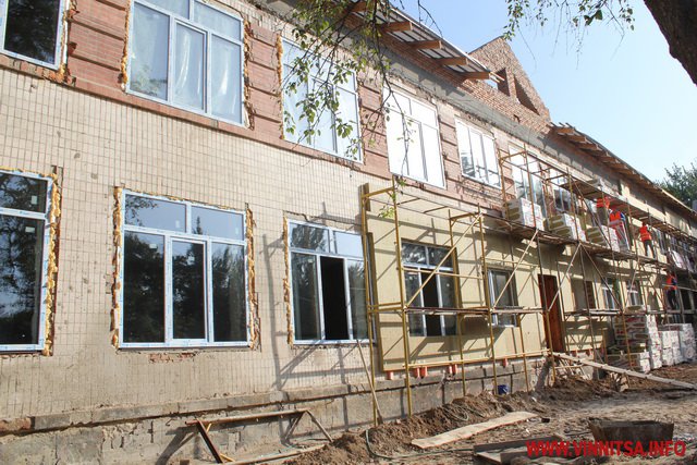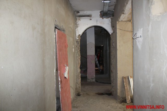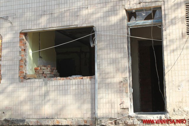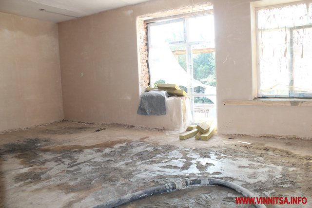 У головному корпусі вже знесли старі перегородки, штукатурку, систему опалення, водопостачання, вікна й двері. У дворі - демонтували прибудови і сараї, зрізали дерева і кущі, що заважали будівництву,
