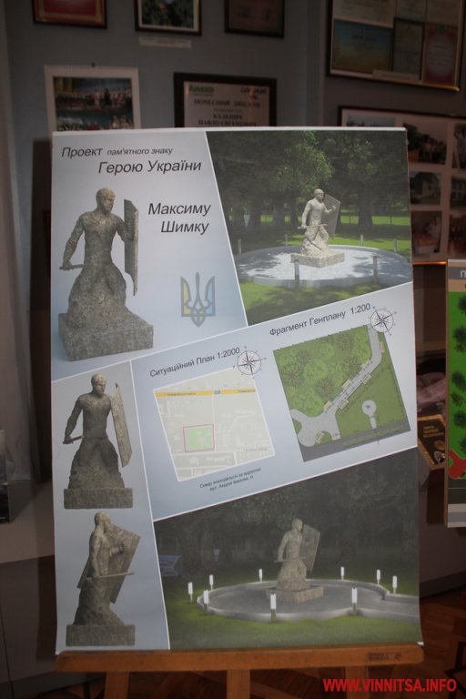 28 січня у Вінницькому обласному краєзнавчому музеї відкрилася виставка студентських проектів пам’ятного знаку Герою України, лицарю Небесної Сотні, вінничанину Максиму Шимку, який загинув у 2014 році на Майдані у столиці.