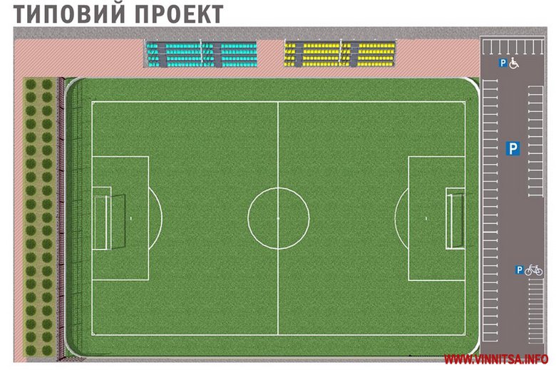 Згідно з проектом, площа футбольного поля становитиме 6400 м – розмірами 100 х 64 м. Будуть облаштовані трибуни та роздягальні із душовими кімнатами, впорядкують і територію довкола спортивного комплексу – благоустрій поєднають з озелененням.