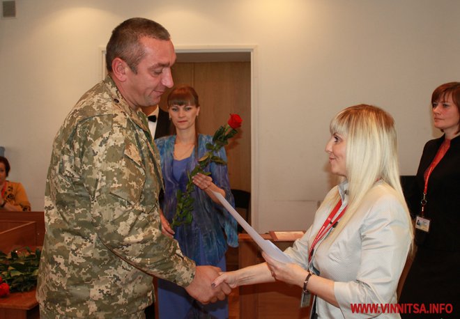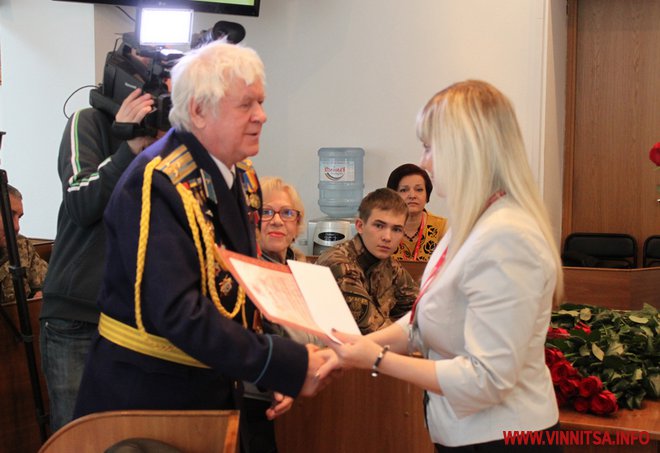«Мені дуже приємно вітати сьогодні вас, наших сильних, хоробрих і мужніх вінничан, із Днем захисника України. Я рада бачити у цій залі молодих хлопців, які захищають нашу країну від агресії, а також ветеранів Збройних Сил, які діляться своїм досвідом, знаннями і вміннями із молоддю. Сьогодні ми вітаємо не лише військових, а й волонтерів, які допомагають нашій армії у такий важкий час і продовжують возити на Схід найнеобхідніше, їхня допомога нашій армії неоціненна», – каже заступнк міського голови Галина Якубович.