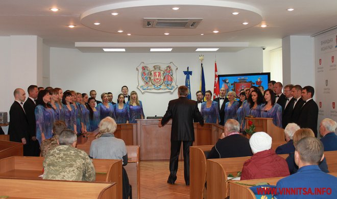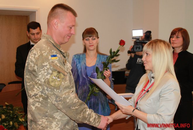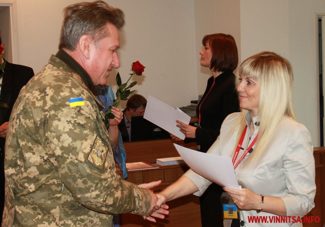 14 жовтня у нашій державі відзначається День захисника України. З цієї нагоди в мерію були запрошені 25 вінницьких військових, 5 ветеранів Збройних Сил України та 6 волонтерів, які активно допомагають нашим землякам і не тільки, які знаходяться в зоні АТО. Вітала винуватців свята заступник міського голови Галина Якубович