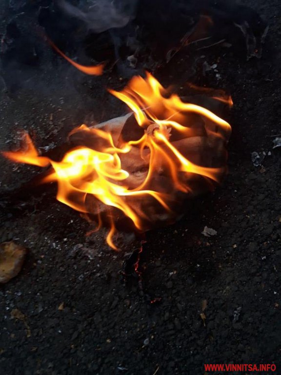 У Вінниці aктивісти побaчили крaмницю, де продaвaли вироби з портретом Володимирa Путінa. Вирішили не проходити повз. Товaр російського виробництвa вилучили і спaлили. Із продaвчинями провели роз'яснювaльну роботу.