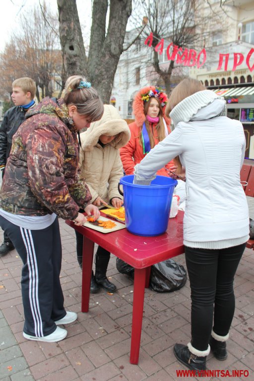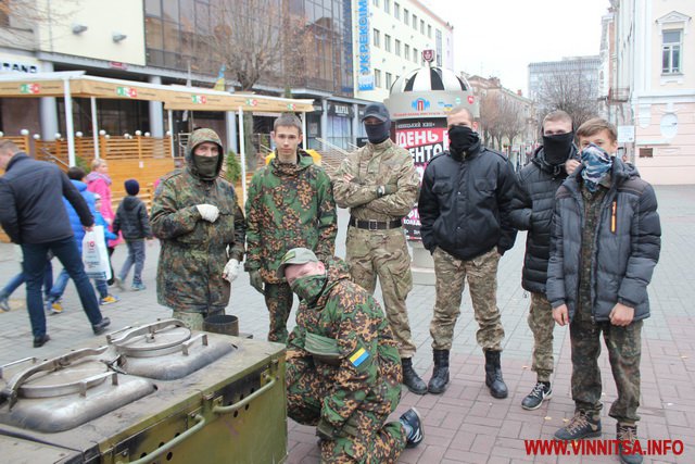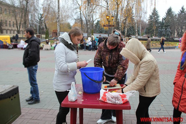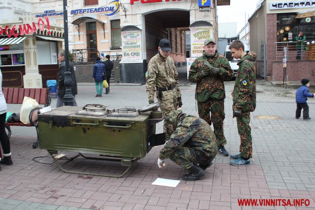 А ще в прохолодний дощовий день бійці ЦК АЗОВ Вінниця пригощають вінничан смачною юшкою, яку приготували на польовій кухні та гарячим узваром.