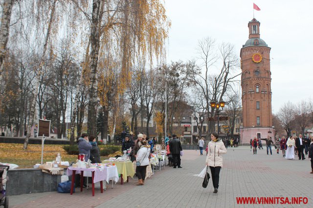 Біля ярмарки облаштували місце, де вінничани можуть принести одяг, іграшки, взуття та необхідні речі для дітей.