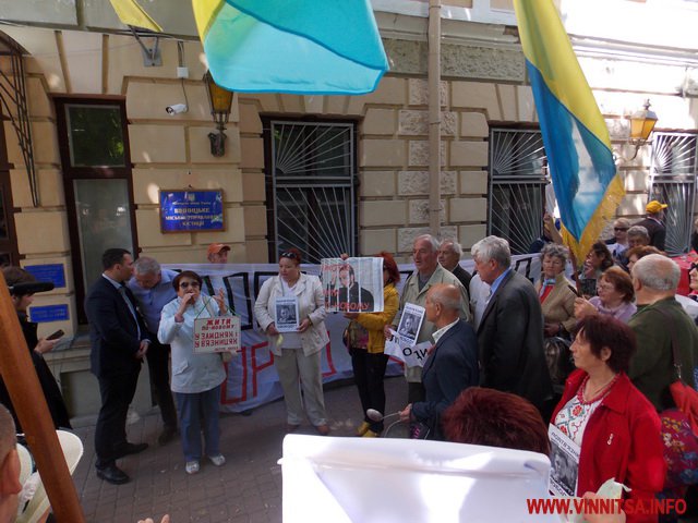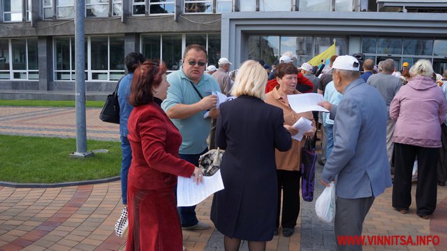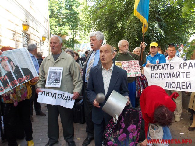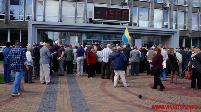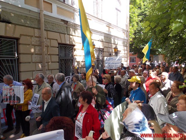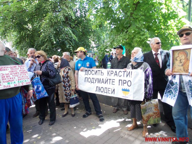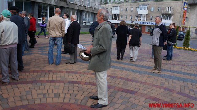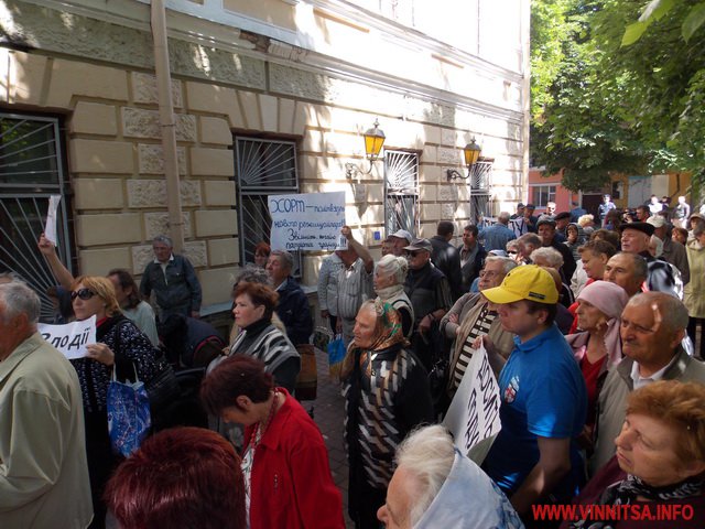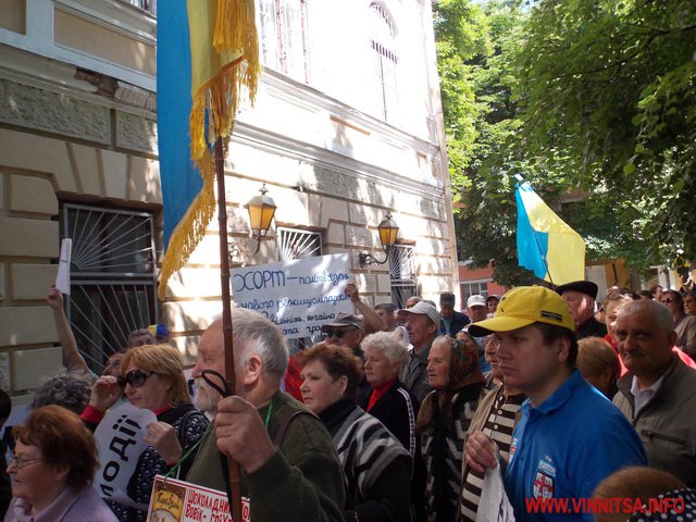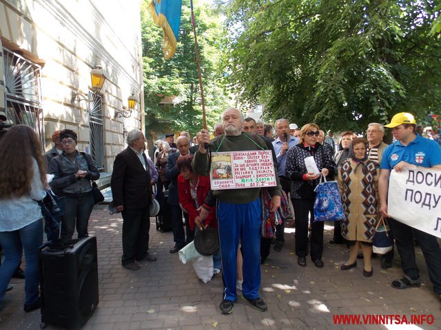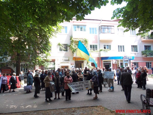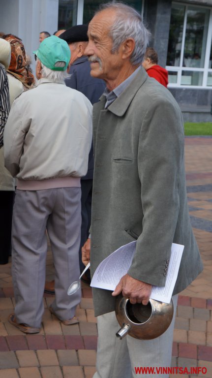 Біля міськради музикальні пенсіонери вимагали: забезпечити пільговий проїзд (який їм і без мітингів зберегли), підняття прожиткового рівня до реального(щоправда це зовсім не в компетенції місцевої влади – ред.), скасувати антинародні тарифи, утворити робочу групу з експертизи діяльності «Вінницької транспортної компанії» та затвердити Закон «Про єдиний енергетичний баланс». Активісти погрожували, якщо влада не виконає даних вимог, то з 1 червня вони перестануть сплачувати за ЖКП та оголосять безстрокову акцію протесту. Біля міськради, де сьогодні проходила сесія, і депутати залишили пенсіонерам безкоштовний проїзд, вони кричали: «Моргунов, виходь!», але Моргунов не вийшов і «каструльний оркестр» з лідерами пішов до обласної адміністрації.