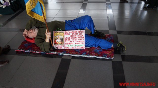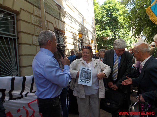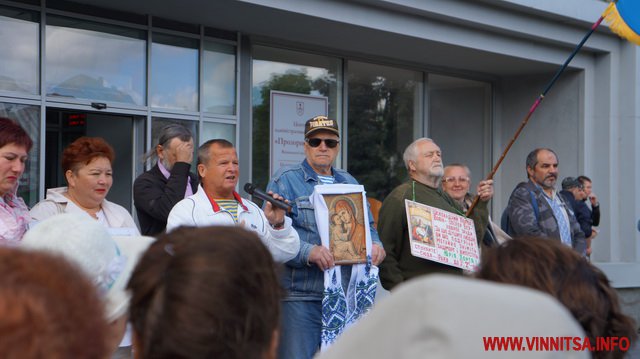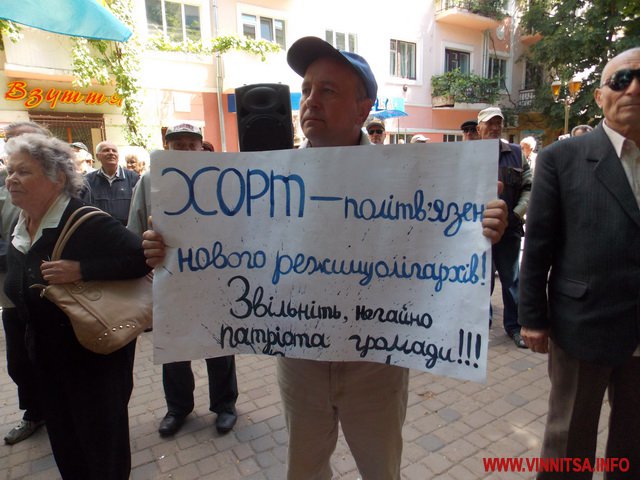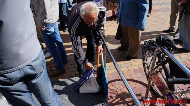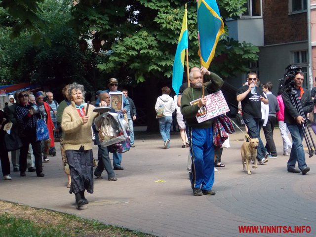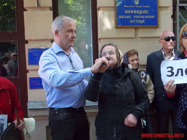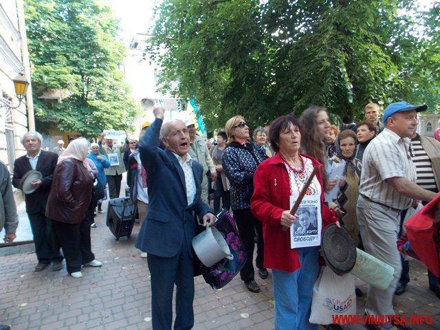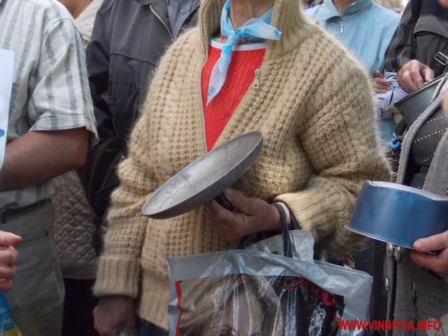 Під супровід «музичних» інструментів: каструль, чайників, черпаків, скалок, макогонів та кришок пенсіонери викрикували вже звичні фрази для перехожих вінничан: «Суддю на мило», «Ганьба», «Хорт не винен»…