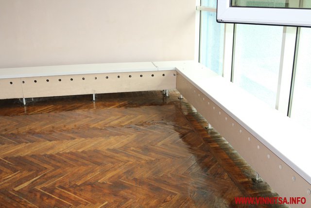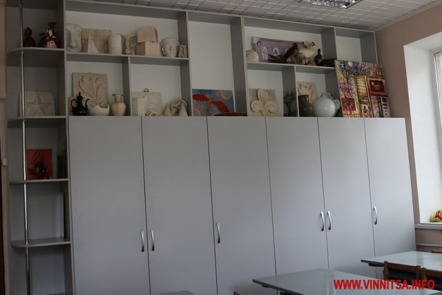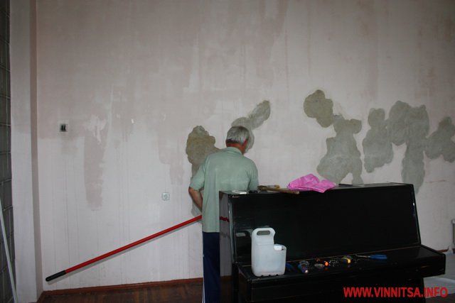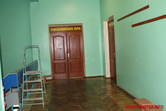 Ще ми поміняли підлогу в нашій самій великій танцювальній залі. Там стояв паркет, якому було 40 років, дах тік тому, він був не в найкращому стані. Замінили його на дубовий паркет, сподіваємося, що він буде вічний. Повністю відремонтували стіни, стелю, підлогу в залі №37, зробили ремонт та купили меблі в кабінет художників. Підлоги ми зробили практично скрізь у танцювальних залах та класах: чи фарбуємо, чи лакуємо чи замінюємо.