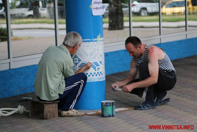 «Віктор Байрак працівник палацу, він не тільки художник, а й музикант. Віктор сам зробив колаж з відомих місць Вінниці: це Вежа, арка, трамвай, площа Гагаріна, фонтан «Рошен»…. Картину після завершення скриємо лаком.», - каже керівник МПМ «Зоря».