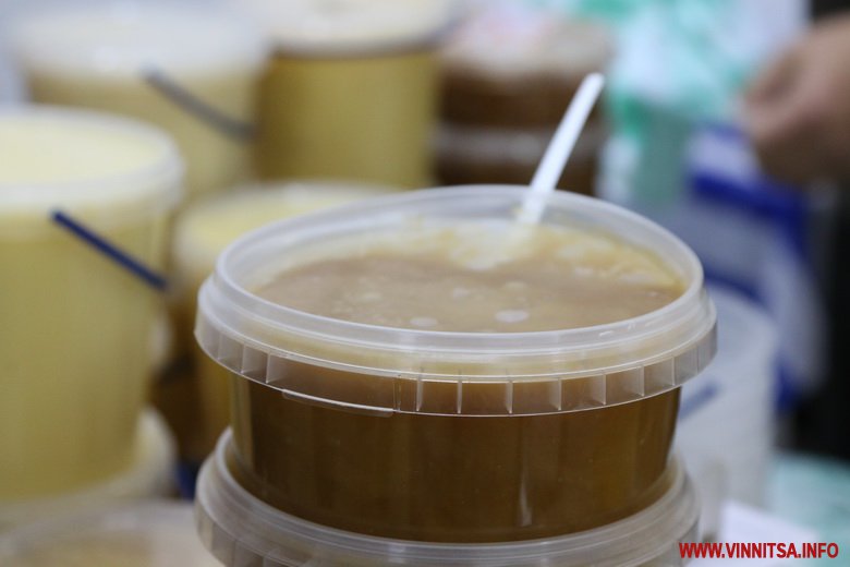 Серед більшості асортименту для садків та городів, відвідувачам цікавий незвичний мед, який має кремоподібну структуру. Продавець ділиться із покупцями секретом, як зробити крем-мед вдома.