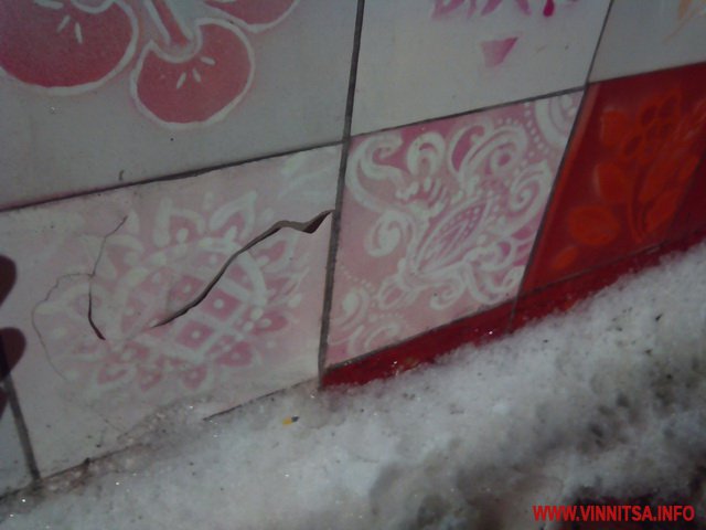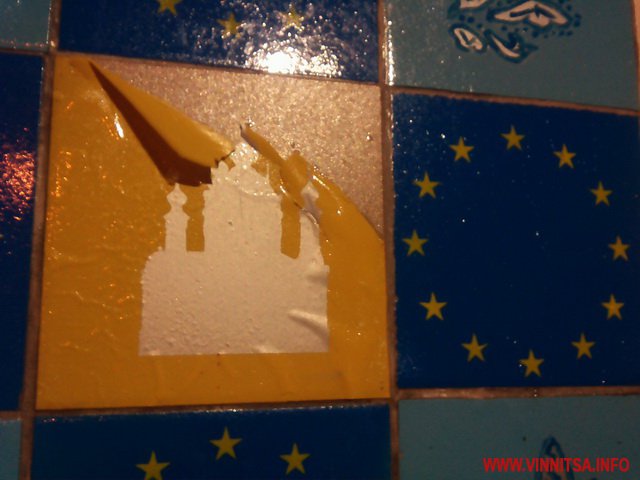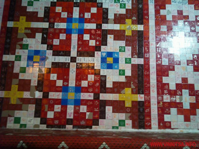 18-метрова мозаїка, що при вході до Центрального парку імені Горького у Вінниці, почала руйнуватися. Плитки, з яких складали патріотичне пано, не витримали морозу і мокрої погоди. Фарба на кахелі лущиться, а зображення деформуються.