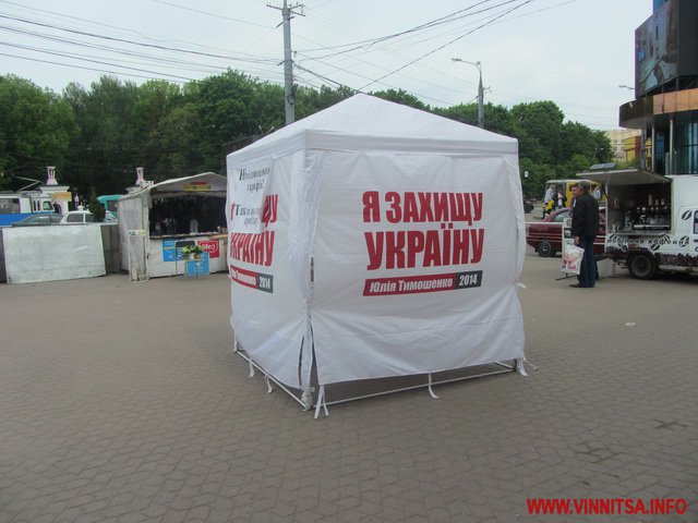 12 травня у Вінниці на площі біля ринку «Урожай» з’явився минулорічний намет з фотографією Юлії Тимошенко із написом: «Захистимо Україну». Такий же намет вчора вінничани бачили і на площі Небесної Сотні.