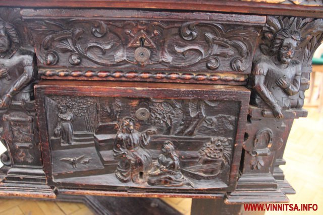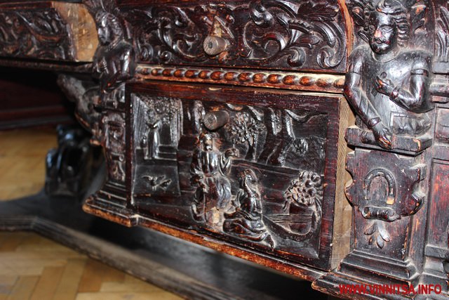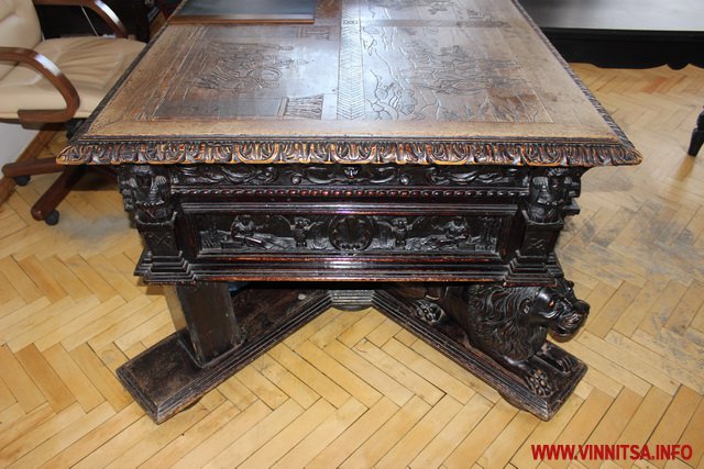 «Стіл в фойє облдержадміністрації буде переміщений тимчасово, щоб з ним могли ознайомитися люди. Але для таких переміщень повинно бути заключення реставраторів, повинно бути вивчене це питання, і повинен бути дозвіл з Міністерства культури на переміщення його з одного приміщення в друге. Зараз стоїть питання можливості переміщення цього столу на тимчасове експонування в облдержадміністрацію», - каже пані Катерина.