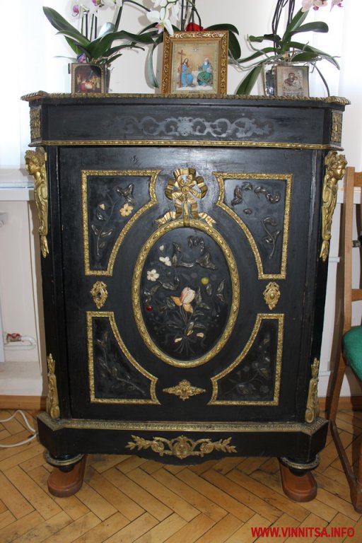 «В 1964 році музей був закритий на реекспозицію. Стіл до музею надійшов у 1965 році. В міськкомі компартії міняли старі меблі на нові поліровані. Тоді нам віддали стіл, шафу і сейф з кабінету когось з секретарів до нашого музею. Так як тоді йшли будівельні роботи, стіни однієї не було, то стіл був занесений в цей кабінет. Ми не знаємо звідки він надійшов до міськкому компартії, думаємо, що десь з найближчих поміщицьких маєтків.