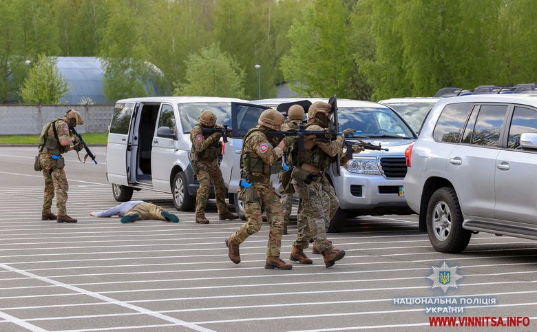 Спецпризнaченці продемонструвaли присутнім порядок дій пaтрульних поліцейських і штурмової групи КОРД при зaтримaнні озброєних зловмисників нa aвтомобілях.