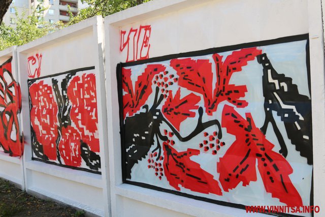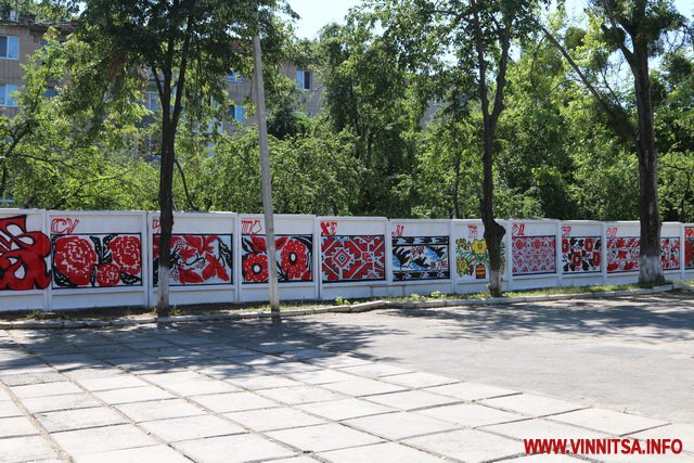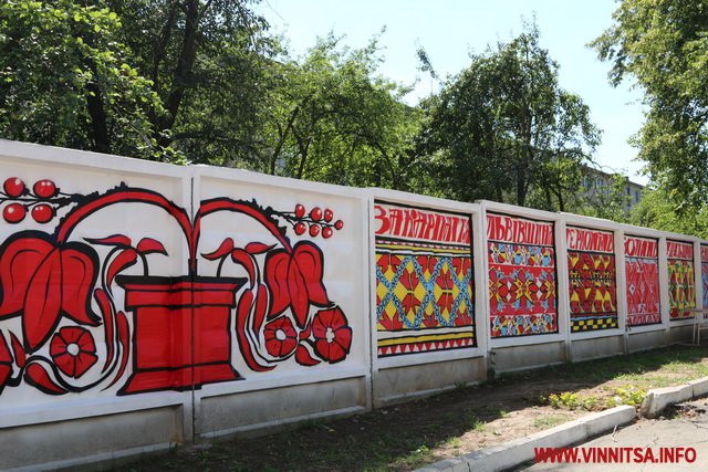 У Вінниці в кінці липня біля школи № 23 на бетонний паркан почали наносити патріотичний малюнок у стилі стріт-арт «Україна вишивана». Територія його становить 214 квадратних метрів.