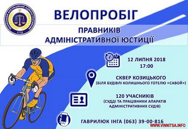 12 липня у Вінниці відбудеться велопробіг за участю суддів та працівників апаратів адміністративних судів Вінницької, Чернівецької та Хмельницької області.