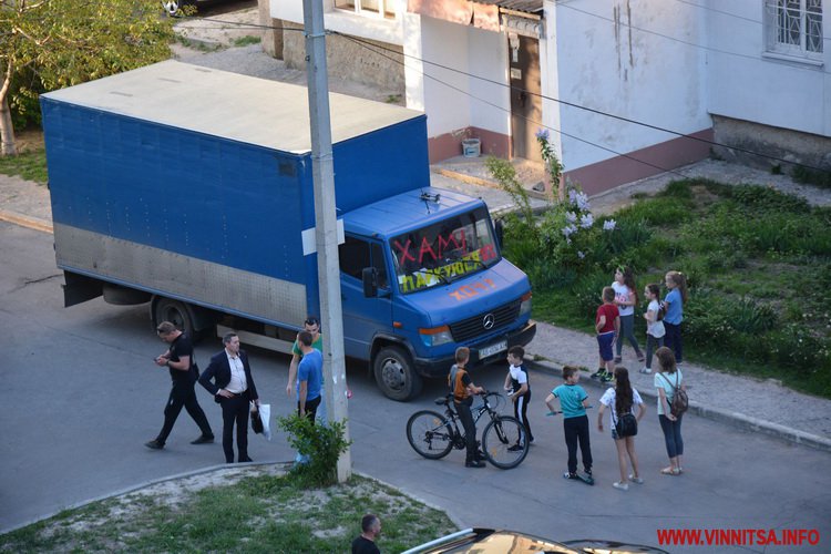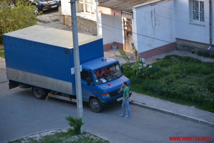 Днями у Вінниці в одному з дворів місцеві мешканці своєрідно покарали водія вантажівки, який незручно для всіх припаркував свій транспортний засіб. Лобове скло машини обклеїли різнокольоровим скотчем із символічним текстом: «Хам! Паркуюсь, де хочу».