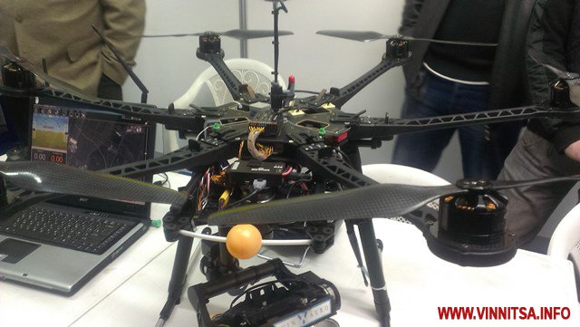 Свої розробки тут експонують і вінницькі інженери, які розробили унікальні безпілотники (гексакоптери), що можуть бути незамінними помічниками для бійців АТО.