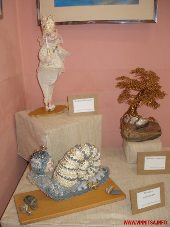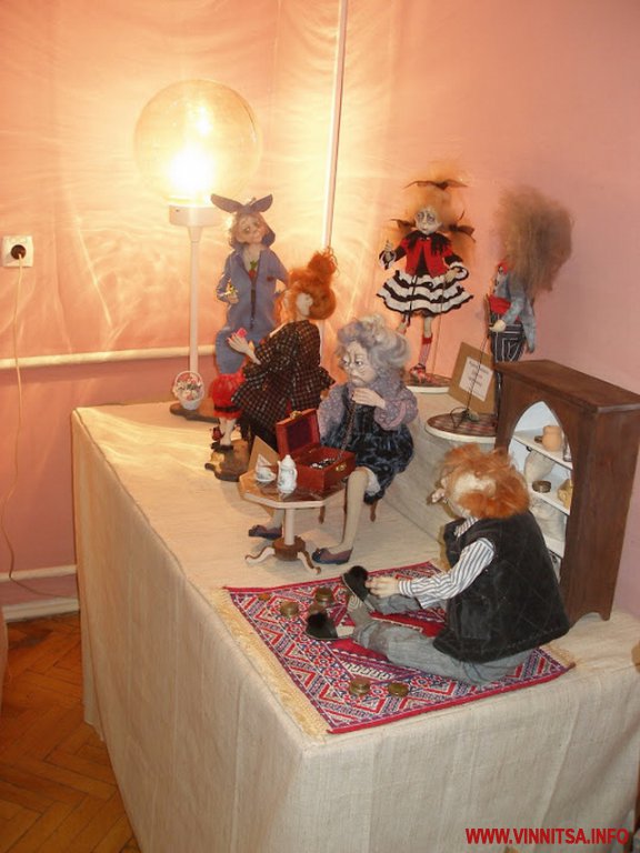У виставковій залі Вінницького обласного художнього музею відкрилася виставка вінницького дизайнера Ірини Олонічевої, яка презентувала власноруч виготовлені ляльки, картини та фото.