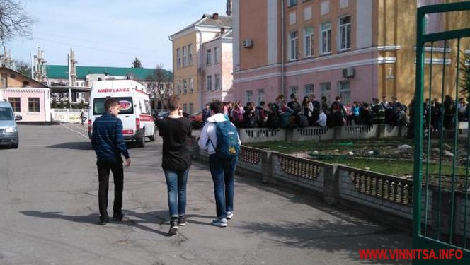 1 квітня зранку у Вінницькій гуманітарній гімназії №1 старшокласник в коридорі розпилив газовий балончик. 18 школярів з отруєнням було госпіталізовано до лікарні.