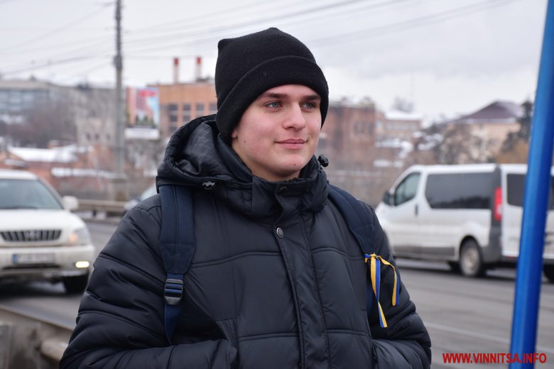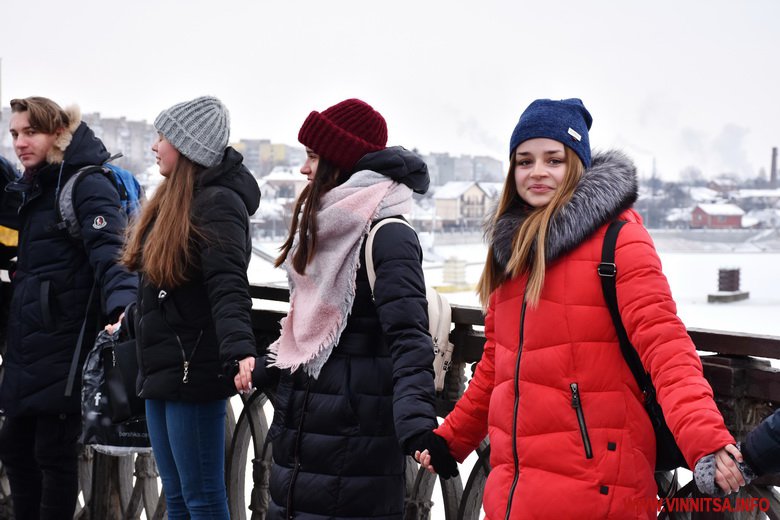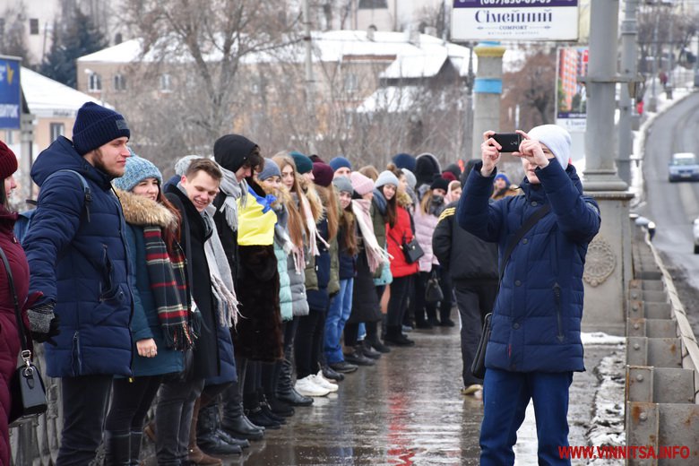 «Попри такий нестерпний холод, ми з друзями прийшли на міст, щоб долучилися до всеукраїнського флешмобу «Ланцюг єднання». Це особливий день для нашої держави. Ще раз підтвердження того, що тільки за нашим народом лежить створення вільної та демократичної країни», – каже студентка Юлія.
