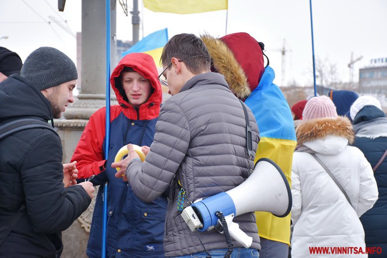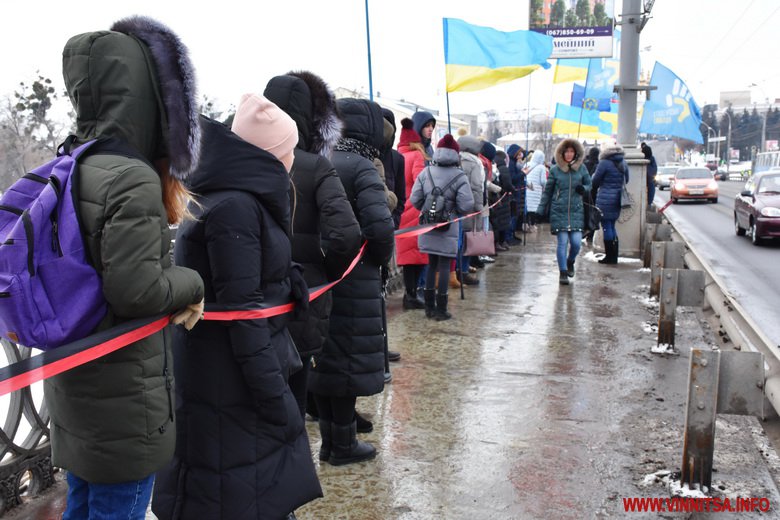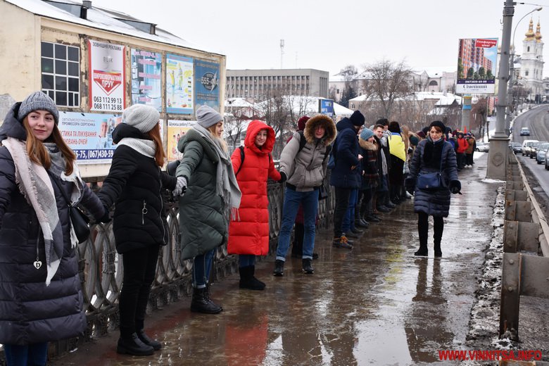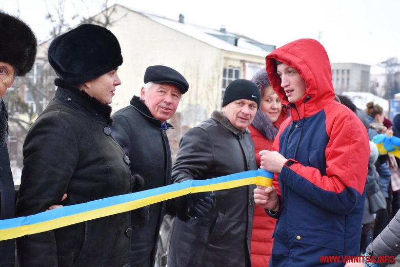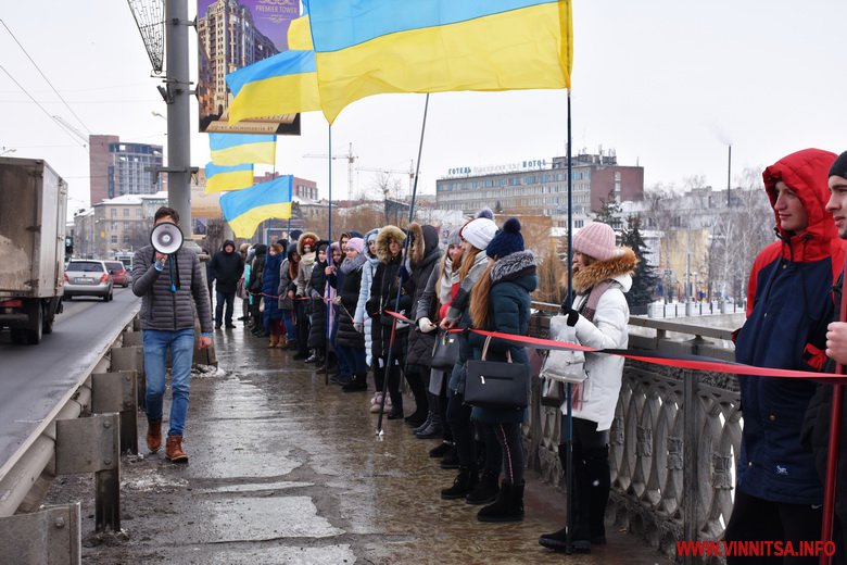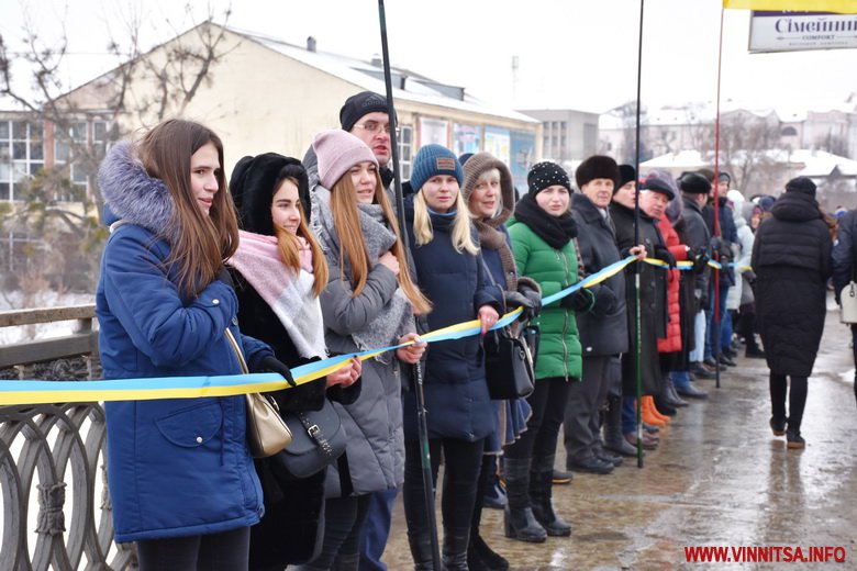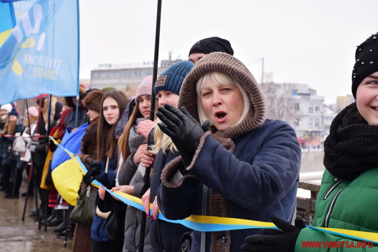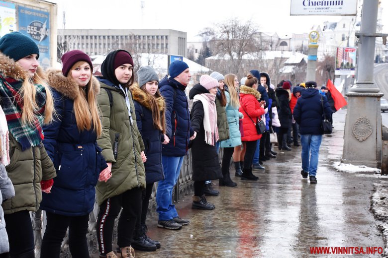У Вінниці 22 січня відбулась акція «Ланцюг єднання» з нагоди 100-річчя з Дня Соборності України. На Центральному мосту зібралося близько двох сотень вінничан, взявшись за руки, співали Гімн України та вигукували «Слава Україні». Таким чином, це є символічним об’єднанням двох берегів Дніпра.