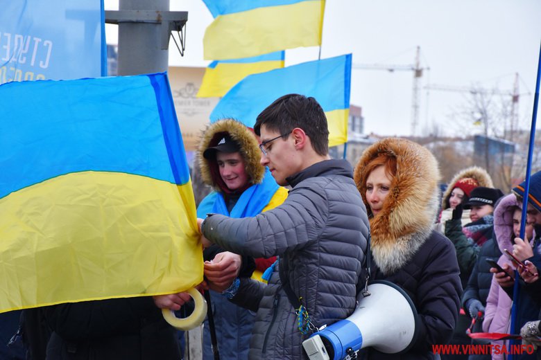 Нагадаємо, з нагоди святкування Дня Соборності, у Вінниці на площі Європейські відбувся патріотичний флешмоб – студенти вишикувалися в надпис «Соборність», підняли вгору жовто-блакитні прапорці і разом заспівали гімн.