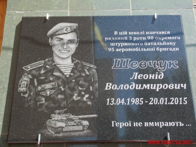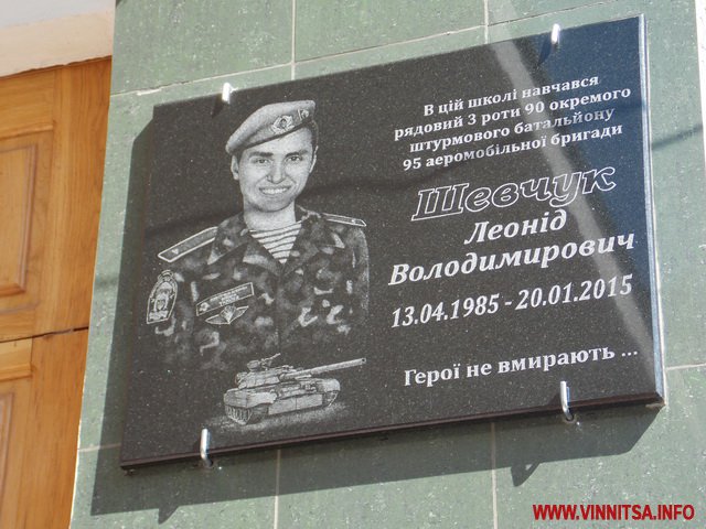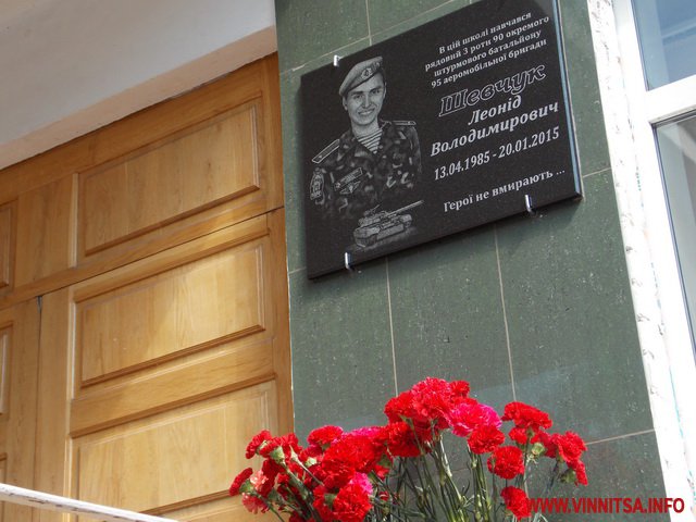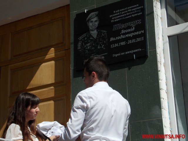 27 травня у вінницькій 10-й школі відкрили меморіальну дошку на честь колишнього випускника Леоніда Шевчука, який загинув 20 січня цього року, при обороні Донецького аеропорту.