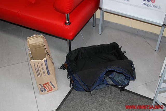 4 грудня до поліції надійшло повідомлення про підозрілу знахідку від працівників одного з банків міста Вінниці. У відділенні було знайдено залишену без нагляду сумку.