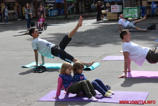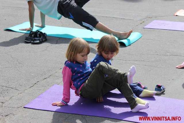 Майстер-класи, які проводять провідні спеціалісти допомагають новачкам опанувати ази йоги. На захід прийшла і малеча, яка з усіх сил намагається виконати вправи. Всім учасникам вручили символічні браслети.