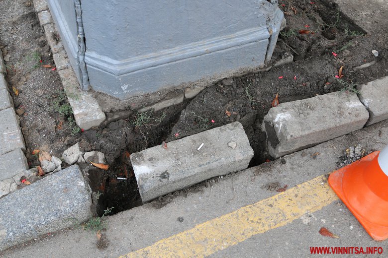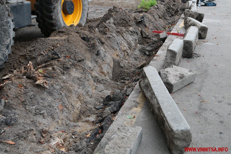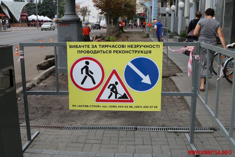 У Вінниці на вулиці Соборній ремонтують частину тротуару, замінюють стару бетонну плитку на гранітну. Станом на 20 липня зранку на території працює 6 робітників та одна одиниця техніки. Працівники вже зняли частину старої плитки, демонтували бордюри. Територію, де проводяться ремонтні роботи обгородили.