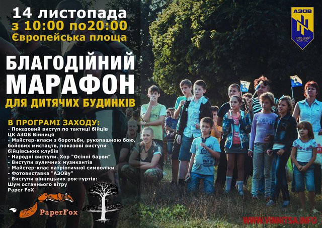 14 листопада у Вінниці на площі Європейській проходитиме благодійний марафон для дитячих будинків.