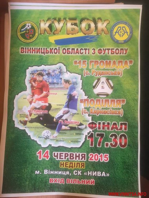 14 червня у Вінниці на стадіоні СК «Нива» («Хімік») відбудеться фінал Кубка Вінницької області з футболу 2014/2015 років.