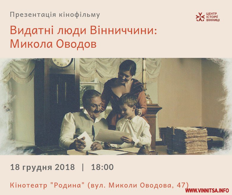 18 грудня у Вінниці презентують документальний фільм «Видатні люди Вінниччини: Микола Оводов». Захід відбудеться в кінотеатрі «Родина», початок – о 18 годині.