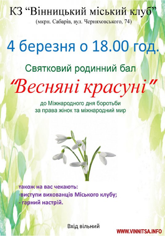4 березня у «Вінницькому міському клубі», що знаходиться в мікрорайоні Сабарів відбудеться святковий родинний бал.