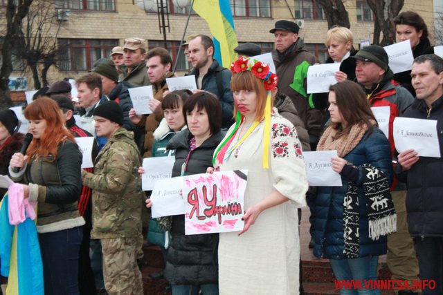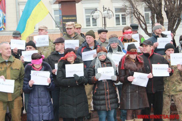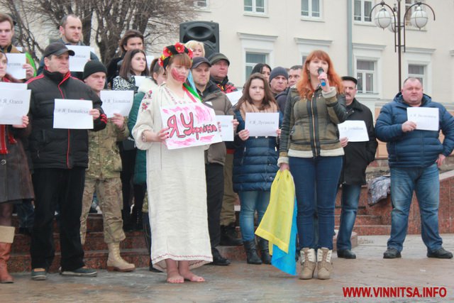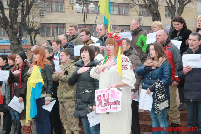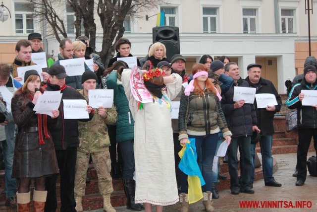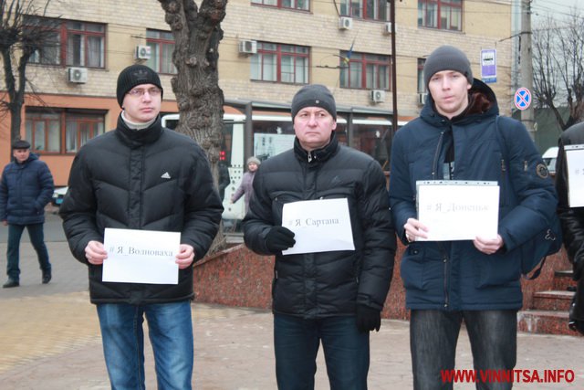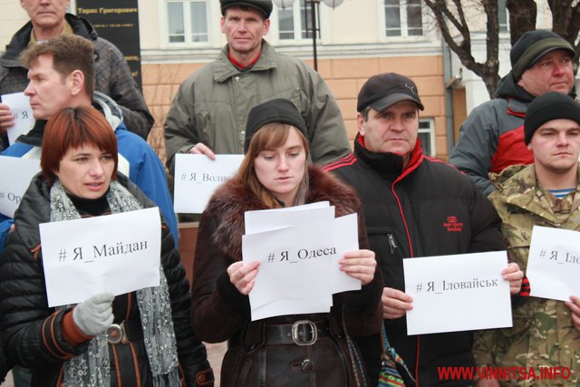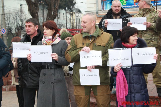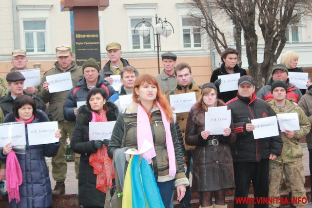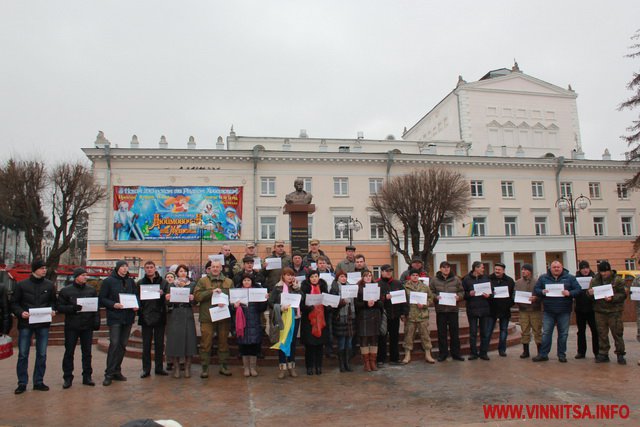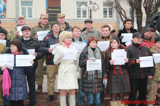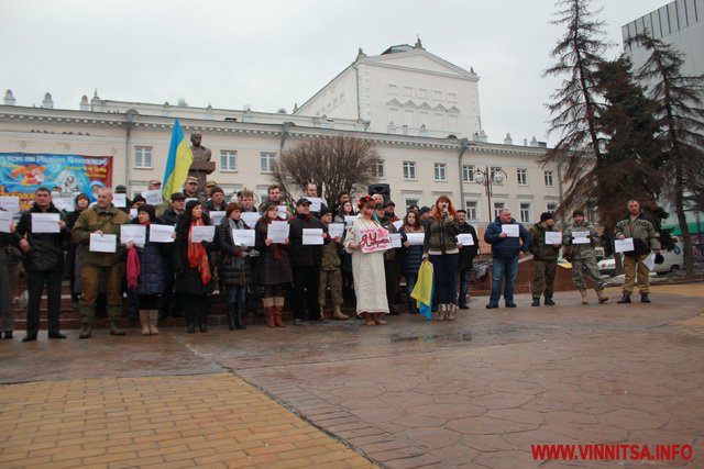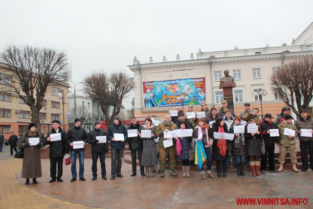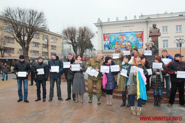 До акції приєдналося більше пів сотні вінничан, вони стояли з листівками, де написані написані міста та села, мешканці яких постраждали від тероризму.