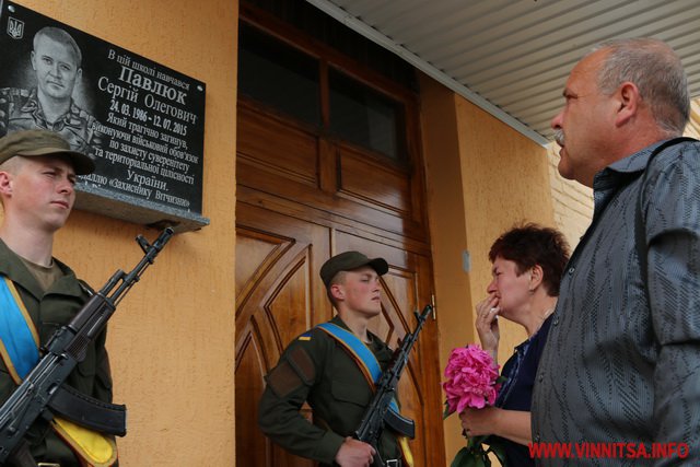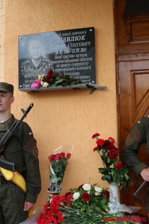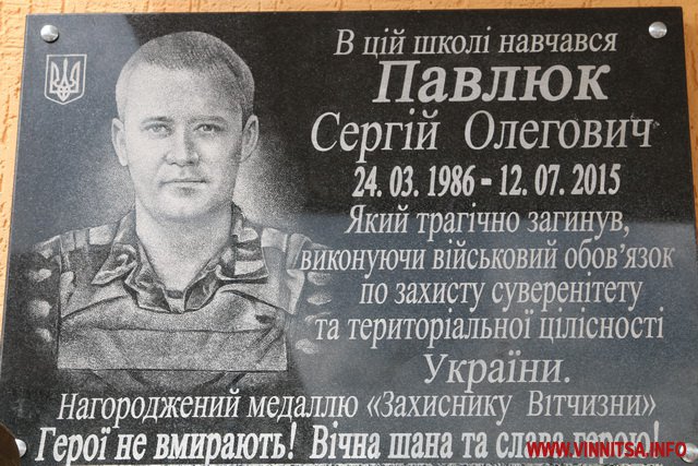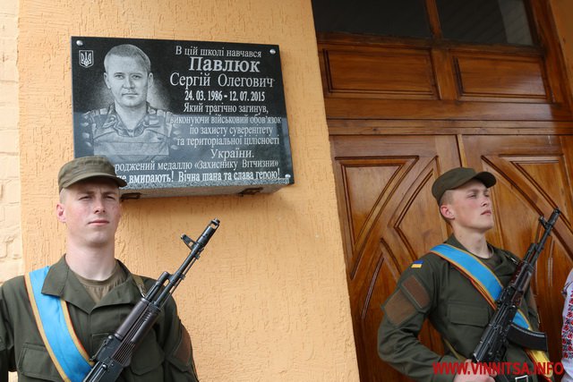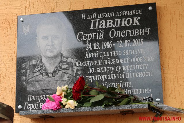 26 травня у Вінниці відкрили пам’ятну дошку нацгвардійцю Сергію Павлюку, який загинув в ДТП повертаючись з АТО. Меморіал встановили на рідній, 19-тій школі захисника.